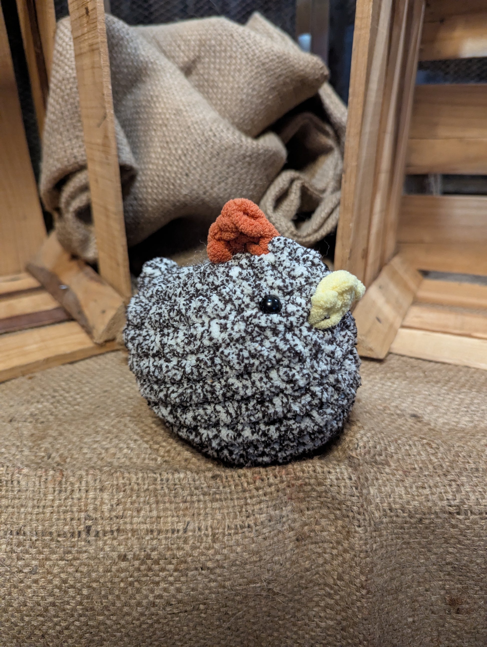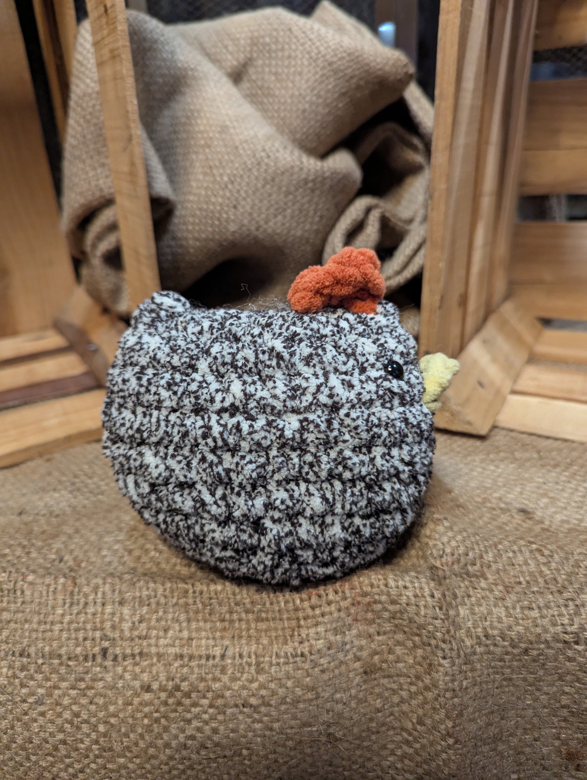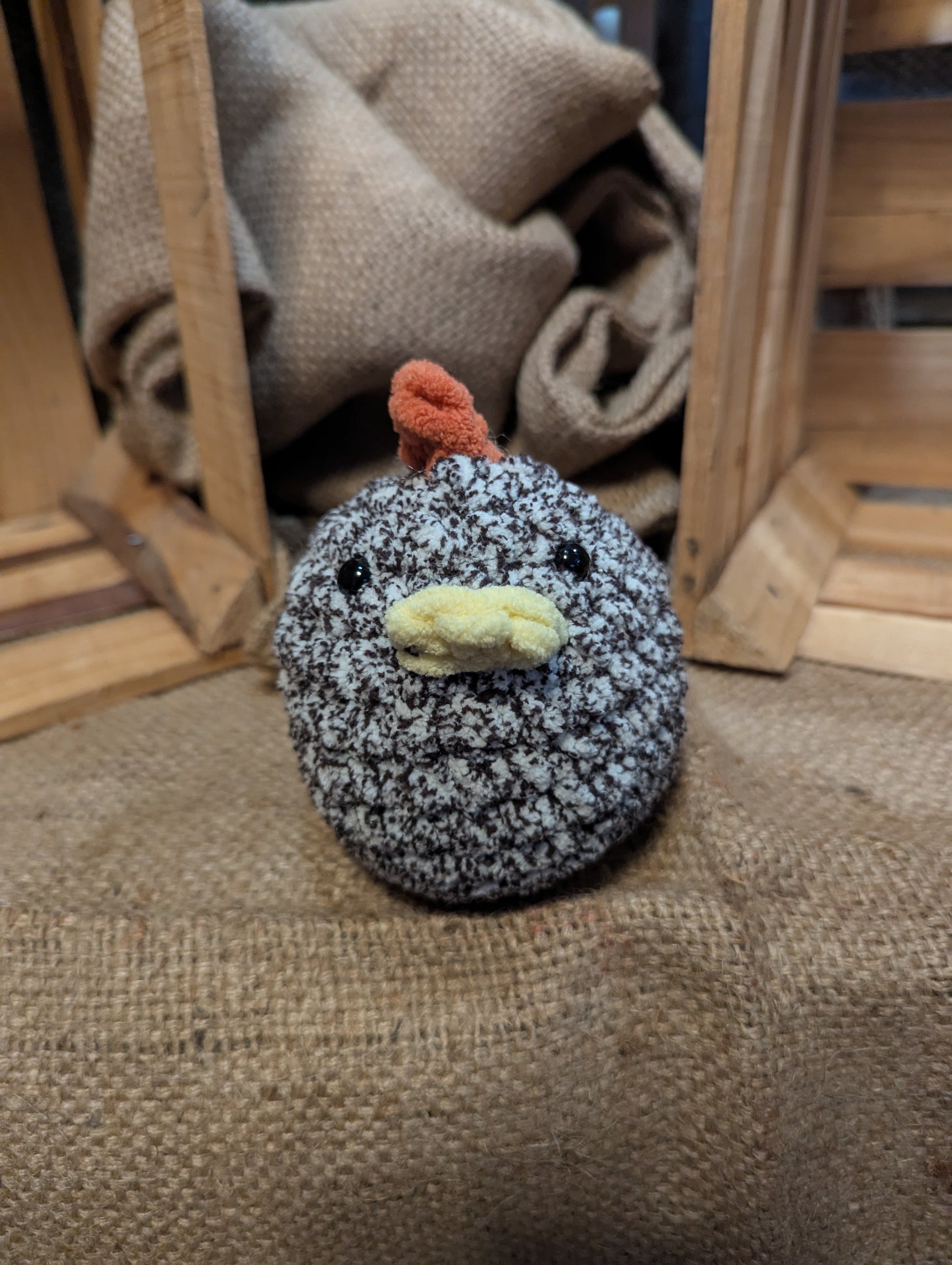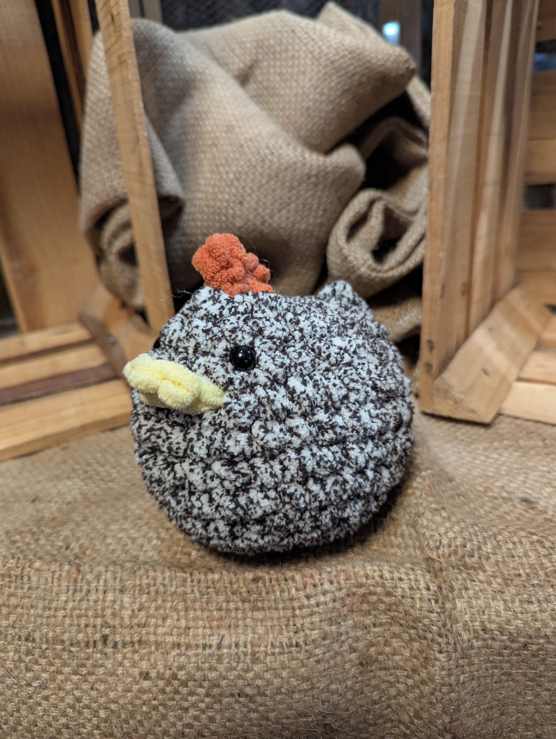 Handmade crochet plushie — Chicken. Approx. size: 5 in x 4 in x 4.5 in. Soft, huggable, and crafted with care.